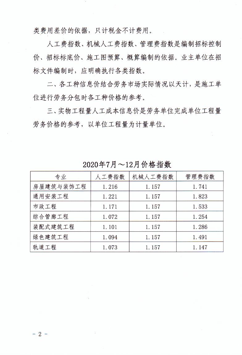 辽住建建管〔2020〕3号辽宁省2020年第三季度建设工程人工费动态指数