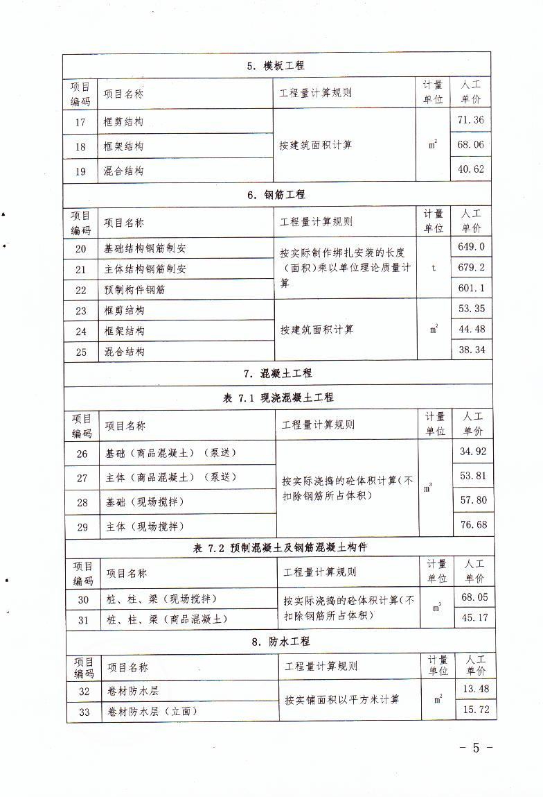 赣建价〔2020〕5号关于调整2017版《江西省建设工程定额》综合工日单价的通知